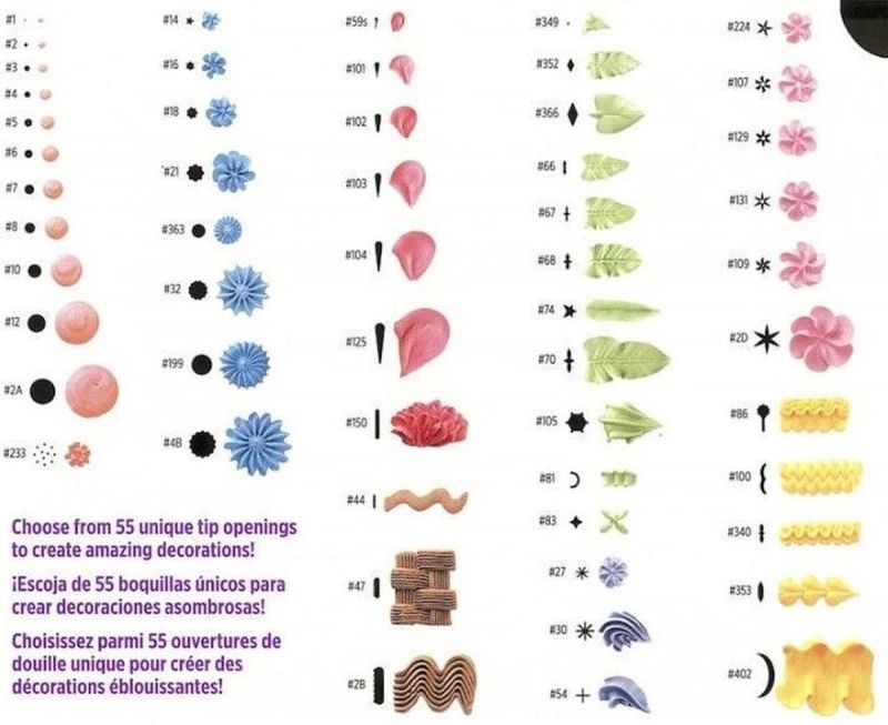 Професионален комплект за украса на торти,окомплектован в удобен пластмасов органайзер. Комплектът включва: 55 накрайника: