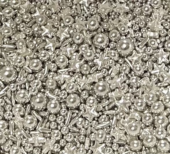 Състав: набухнал ориз, пудра захар, царевично нишесте, хранителни оцветители: хранително сребро (E174), покриващ агент: Capol (шеллак, растително масло, етанол).